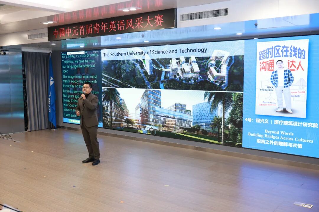 國機工程集團黨委書記、董事長,中工國際黨委書記、董事長王博作為專業(yè)評委,在點評講話中高度評價所有選手的精彩表現(xiàn),充分肯定本次賽事舉辦的重要意義。他指出,本次大賽不僅是中國中元優(yōu)秀青年員工外語能力和專業(yè)風(fēng)采的展示,更是中國中元向國際“深藍市場”進軍的“沖鋒動員”,是打破“傳統(tǒng)封閉、論資排輩”文化,構(gòu)建“市場導(dǎo)向、包容開放、鼓勵優(yōu)秀人才‘冒頭’”的新企業(yè)文化的生動實踐——唯有突破原有瓶頸、主動走出舒適區(qū)的勇氣,才能實現(xiàn)從傳統(tǒng)設(shè)計咨詢企業(yè)到全球市場競爭者的“能力躍遷”。