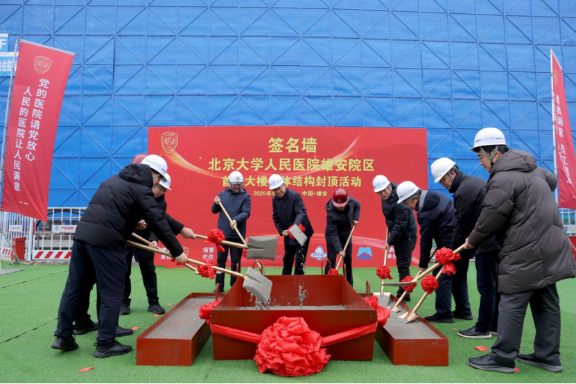 12月18日,由中國中元設(shè)計(jì)的北京大學(xué)人民醫(yī)院雄安院區(qū)首棟大樓(行政教學(xué)科研培訓(xùn)綜合樓)主體結(jié)構(gòu)順利封頂,標(biāo)志著該項(xiàng)目進(jìn)入全面建設(shè)新階段。中國中元總經(jīng)理許海濤出席封頂儀式。